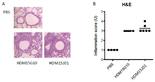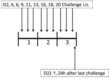 - Description: Challenged with HDM by intranasal administration on days 2, 4, 6, 9, 11, 13, 16,18,20. Mice were sacrificed 24 hours after the last challenge.