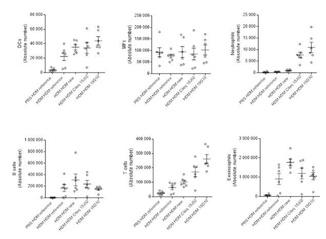 - Description: Sensitized with HDM by intranasal administration on day 0, followed by intranasal challenge at days 6, 7, 8, 9, 10. Mice were sacrificed 3 hours after the last challenge.
