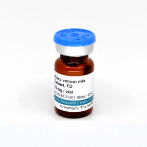 Our bee venom extract is from the Apis mellifera who is also known as the Western honey bee or the European honey bee. The Apis mellifera belongs to the Apidea family and the Hymenoptera order. Hymenoptera venom is known to give a systemic allergic symptoms in 0.8-5.0% of the population. A. mellifera is, worldwide, the most common honey bee specie. Apis mellifera contains five major allergens (Api m 1-4 & 6) with a known sequence. The allergens of the A. mellifera exist out of a complex mixture of peptides, simple organic molecules, proteins and other bioactive elements.